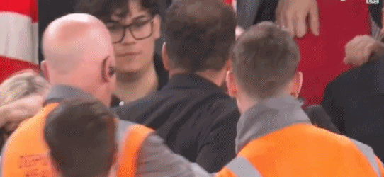 安保人员、马竞工作人员迅速上前,将西蒙尼与球迷隔开。55岁的匪帅依旧喋喋不休。利物浦球迷并无过激举动,西蒙尼却是咄咄逼人,一副准备干架的姿态。没有悬念,西蒙尼吃到红牌!