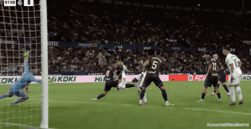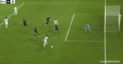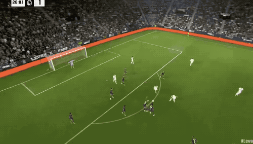 第28分钟,持续围攻的皇马,等到了莱万特防线的混乱,巴尔韦德前场抢断后及时传球,维尼修斯游走到了右路,外脚背巧射,打破僵局。