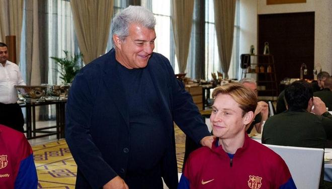 对于弗朗基-德容反对巴萨前往迈阿密踢西甲比赛的言论,拉波尔塔表示:“他是巴萨队长,我尊重他的意见,但俱乐部会在西甲安排的地方比赛。”