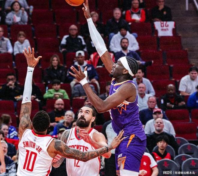比赛从第一节开始,就呈现出与里程碑氛围不符的激烈对抗。火箭队展现出惊人的竞技状态和防守强度,他们用快速的轮转和积极的拼抢,彻底打乱了太阳的进攻节奏。反观太阳,除了杜兰特,其他球员似乎都陷入了得分荒。在这样的背景下,杜兰特几乎是以一己之力支撑着球队的进攻。他首发出战32分钟,每一次触球都显得至关重要,每一次出手都承载着球队的希望。