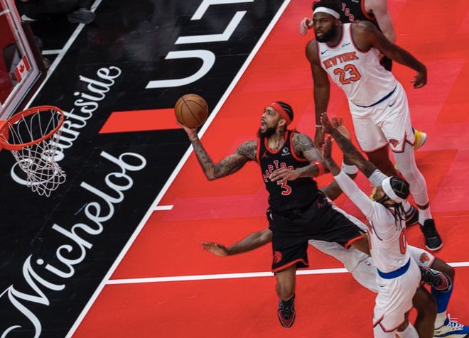 猛龙也是有些可惜,未能在NBA杯更进一步,小组赛取得4胜0负的不败战绩,成功在1/4决赛拥有主场优势。可在这次淘汰赛中,他们只是在第一节延续火热状态,之后就全面陷入被动,特别是在第二节,单节13-34被打爆,之后一度落后高达24分,尼克斯牢牢占据场上主动,也让比赛早早失去悬念,最终猛龙遭遇一场16分的完败。